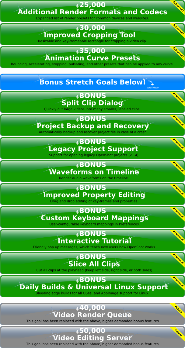 Although this campaign has been successfully completed, OpenShot development marches on, and I will continue to post periodic updates on Kickstarter, especially when new features and new versions are released. If you would like to continue supporting OpenShot, we would be honored and humbled for you to stop by our Patreon page and help us fund the future of OpenShot!