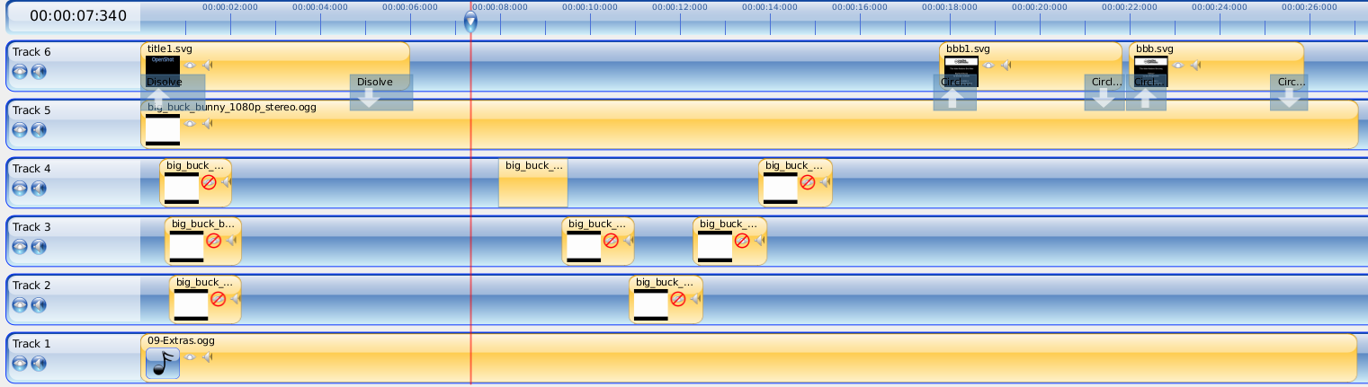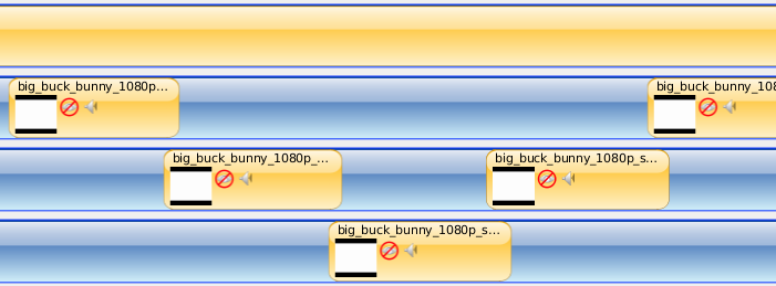Here is a demonstration video that takes a Big Buck Bunny clip, adds an additional sound track, and repeats many sound effects from the original clip. This is a good example of separating the audio and video of a clip, trimming each clip independently, and then mixing them back together (which is actually many different layers of audio).
