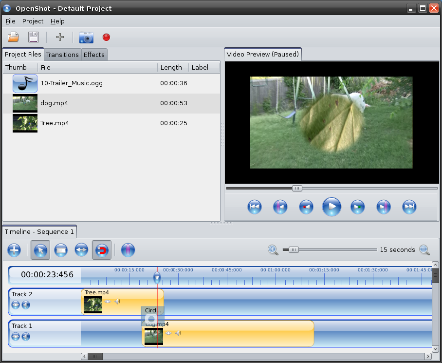 Sometimes you only want to allow part of a clip to show through, but not the entire clip. There are 2 ways in OpenShot to accomplish that. You could use the alpha channel, and edit a clip frame by frame (i.e. takes a lot of work). Or you can convert a transition to a "mask". This mask will allow only a portion of the lower track to show through. Depending on which transition you use, and the transition properties, the size, shape, and softness of the mask will change.